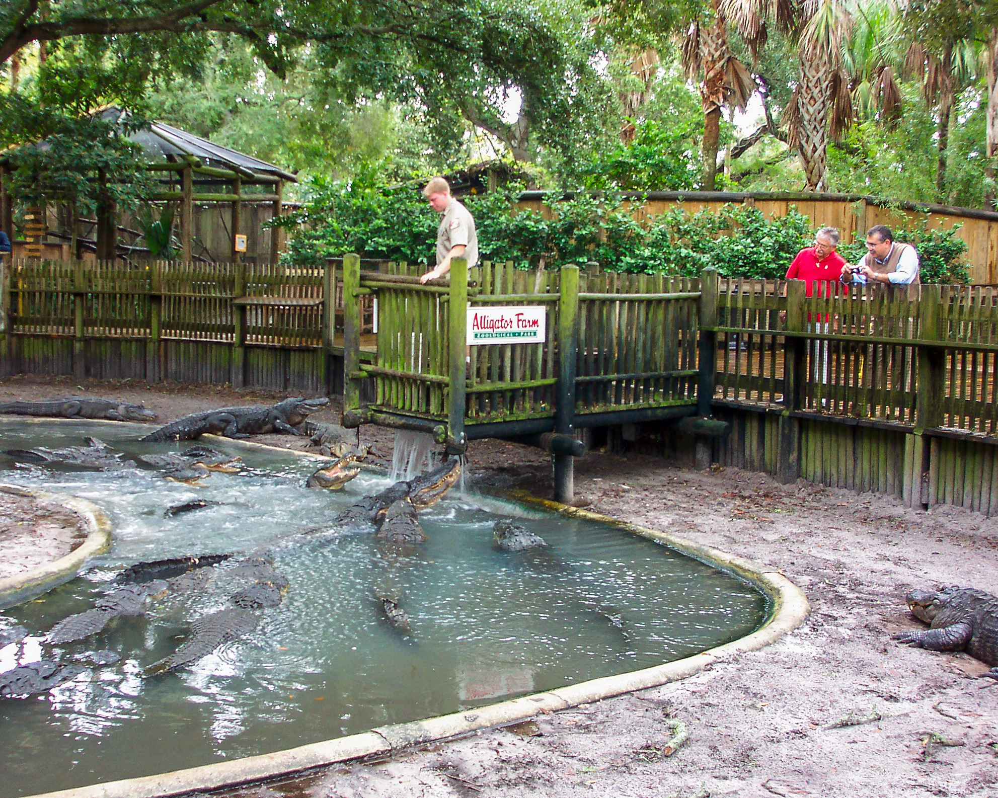 Beim Leuchtturm ist mir die Story über die um den Umsatz besorgten älteren Ladies an der Kasse in Erinnerung geblieben: Damals (heute weniger) gab es an jeder Ecke Coupon Hefte, praktisch für jede Sehenswürdigkeit gab es darin einen Gutschein mit (geringem) Rabatt. Im Hotel hatte ich so ein Heft auch vorgefunden und hocherfreut die Coupons für Leuchtturm und Farm zur Kenntnis genommen, konnten wir doch heute ein bisschen sparen. Die herausgerissene Seite mit den Coupons hatte ich mitgenommen, und leider erst zu spät gemerkt, das die beiden Coupons so blöd auf Vorder- und Rückseite eines Blattes gedruckt waren, das man nur einen benutzen konnten. „Na gut, dann zahlen wir den Leuchtturm eben voll“ dachte ich, denn an der Alligator Farm gab es wesentlich höheren Rabatt. Im Eingangsbereich des Leuchtturm Shops lagen nun ebenfalls die Coupon Hefte aus. „Super“, dachte ich mir, „gibt ja doch Rabatt“, nahm so ein Heft, schlug die Seite mit dem Leuchtturm Coupon auf und wollte den Eintritt bezahlen. „Der Coupon gilt hier nicht“ sagte jedoch die Omi hinter der Kasse. Tatsächlich, bei genauerem Hinsehen konnte man ein hellgraues handschriftliches „Void“ über dem Gutschein erkennen, vermutlich mit total vertrocknetem Filzstift hingeschrieben. Das muss man sich mal vorstellen, da packen die Ladies jedes dieser Hefte einzeln aus, schlagen die Seite auf und überschreiben den Gutschein, bevor sie die Hefte auslegen. Nur um zu verhindern, das Besucher „ad hoc“ einen Dollar sparen. Mit mir ging das natürlcih nicht. Nachdem ich überprüft hatte, das der Coupon für die Alligator Farm aus dem Leuchtturm Heft unversehrt und gültig war, zog ich die Seite aus dem dem Hotel Heft hervor und meinte „Na gut, dann nehmen wir eben den hier“.