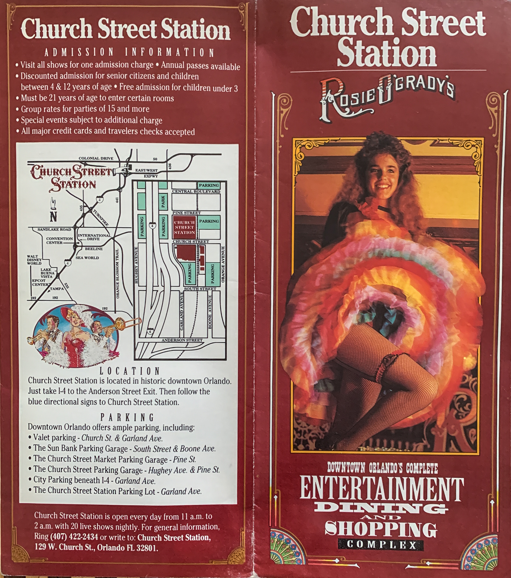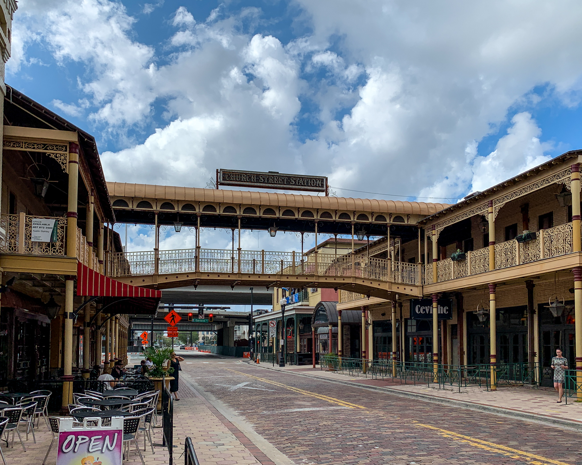 Hinter dem Bahnübergang kommt dann der historische „Church Street Station Komplex“. In den 70er Jahren wurde hier ein Entertainment und Nachtclub Komplex eröffnet. „Die“ Attraktion im Nachtleben Orlandos, begann der Abschwung in den 90er Jahren. Ein bisschen Nostalgia ist angesagt, bei meinem ersten Florida Urlaub, eine Rundreise mit Meiers Weltreisen, wurden wir nach Disneyworld am Abend hierhergekarrt.