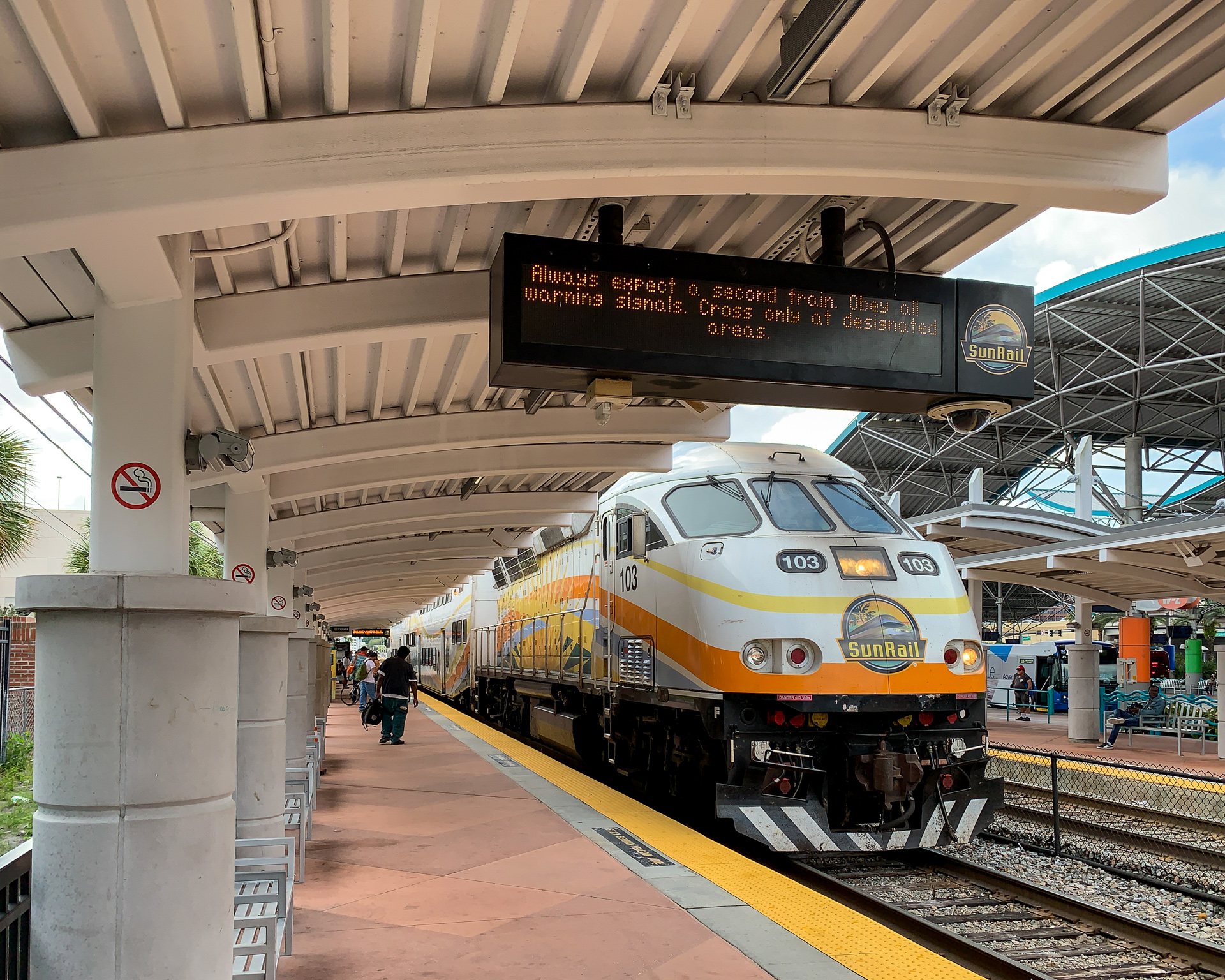 Fast eine Stunde dauert die Fahrt über Winter Haven und Sanford bis DeBary, dem nördlichen Endpunkt der Linie. Das ist ungefährt die halbe Strecke von Orlando in Richtung Daytona Beach. Ausser Park und Ride Plätzen gibt es an der Station nichts Interesssantes, wir fahren daher sofort wieder zurück.