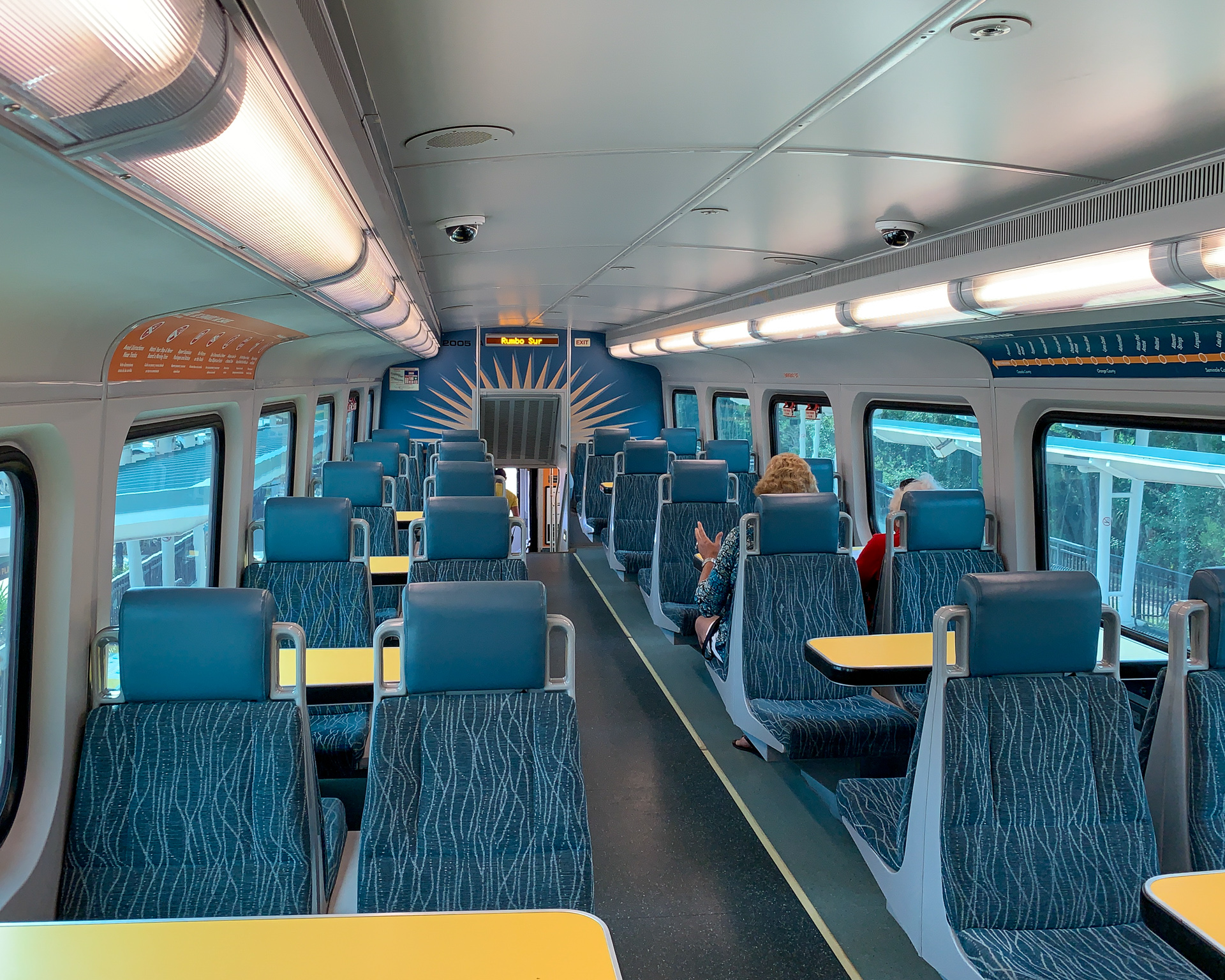 Mit nur zwei Wagen sind die Züge recht kurz, es gibt daher noch jede Menge Reserven für Nachfragesteigerungen. Wir haben heute tatsächlich Schwierigkeiten, einen Sitzplatz zu finden. Eine große Gruppe Senioren macht einen Ausflug nach Sanford und sorgt heute für eine gute Auslastung.