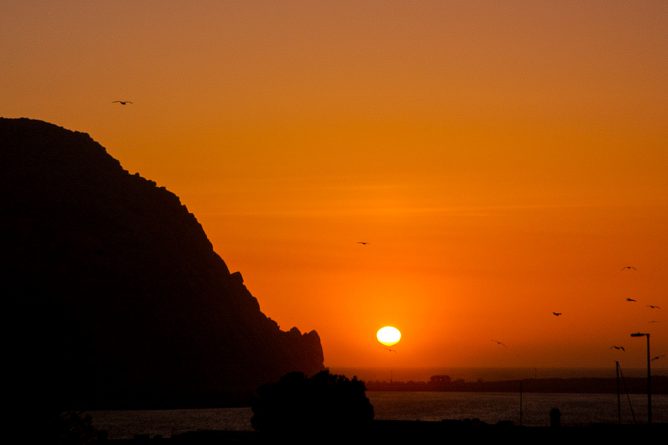 Am heutigen Tag stand die Fahrt nordwärts über den schönsten Teil der Küstenstrasse, des Highway 1, an. Ziel war San Mateo kurz vor San Francisco. Nach einem mittelmäßigen ‚continental Breakfast‘ ging es erst nochmals zum Hafen, am Morgen zeigte sich der Morro Rock im besten Licht.